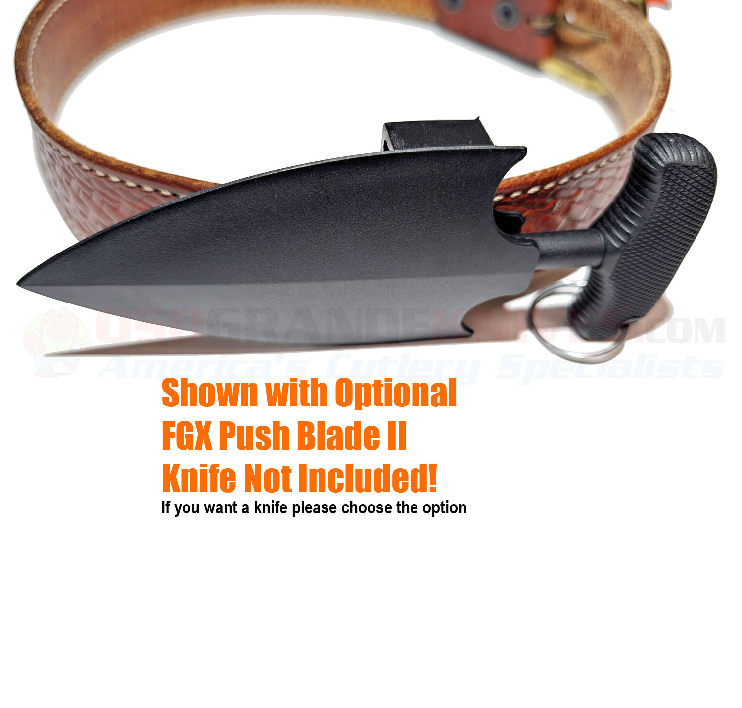 This sheath for the Cold Steel FGX Push Blade II is sold without a knife but you can also purchase a the Push Blade II knife by selecting the "Knife Option" when adding the product to your cart.