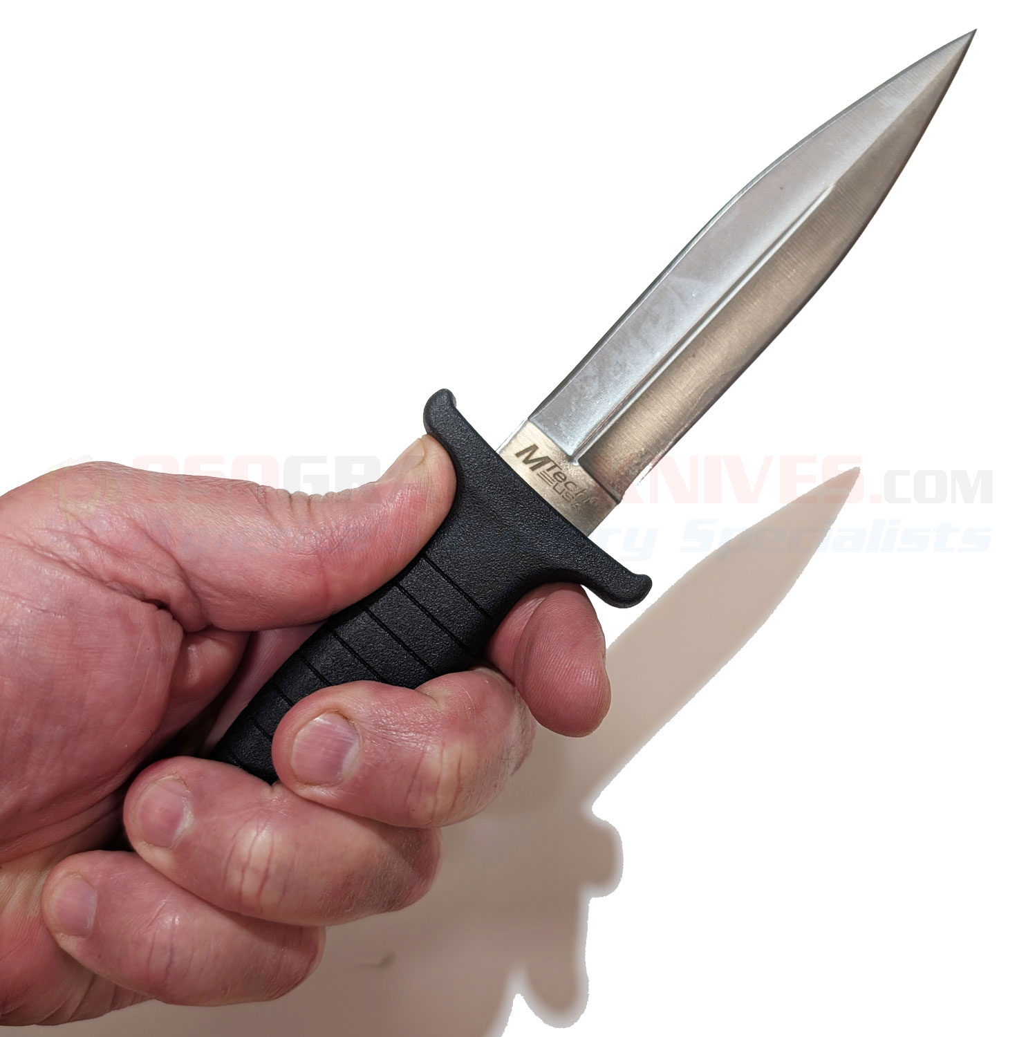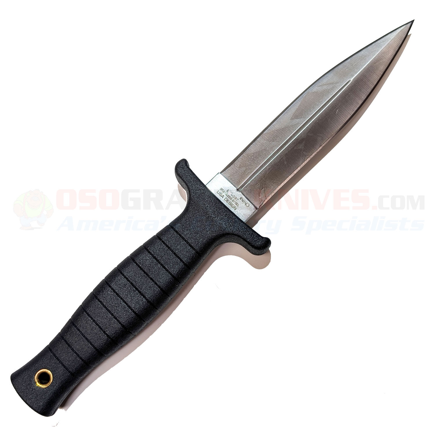 This dagger knife is an economically priced mid-size boot knife that is concealable and makes an excellent self-defense knife. This mid-size fixed-blade dagger features a 4.50 inch double-edged stainless steel blade. The double-edge profile offers strong piercing capability in a narrow footprint. The rubber handle has grooves and an over-sized guard and a lanyard hole so you can maintain a firm grip in extreme situations and the rubber grip also absorbs shock during use, enhancing comfort and control.