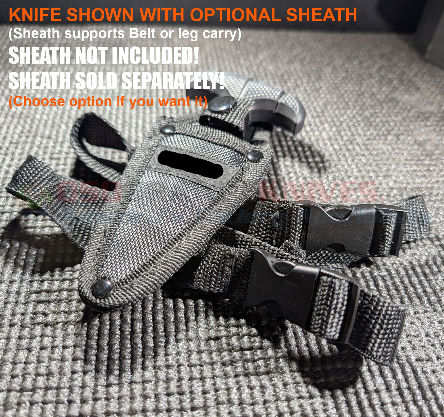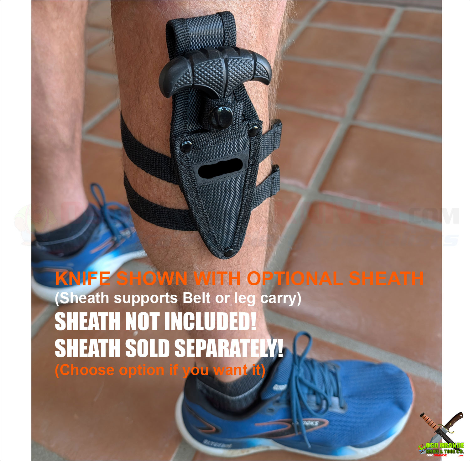 A) Optional Tactical Nylon Belt Sheath with Ankle Straps: This premium nylon belt sheath works with both of these push knives. This sheath enables you to conveniently carry your push knife in two ways... on your belt, or for discreet carry, strap the sheath to your leg and hide it under your trousers. Note: If you desire the belt carry mode simply remove the dual leg straps. Either way you'll dig the way this sheath expands your carry options.