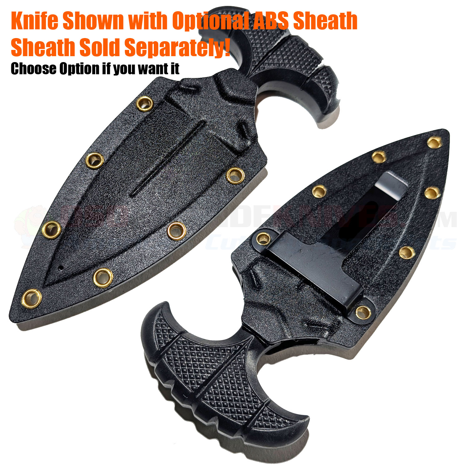 B) ABS Plastic Sheath: This sheath option will work with both of these push knives and it will enable you to covertly carry your push knife in your boot, in your pocket or, by adding a neck lanyard, hanging from your neck for stealth and rapid deployment. The ABS Sheath holds each Push Dagger securely. There is no rattle and it fits so snug that it will not fall out. This is an ultra lightweight setup with the sheath weighing in at only 1.2 ounces, which will make your covert setup light and fast.