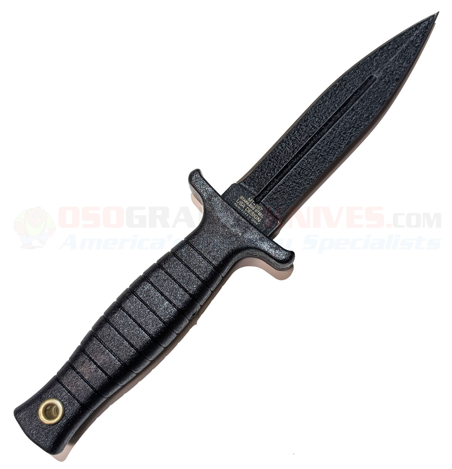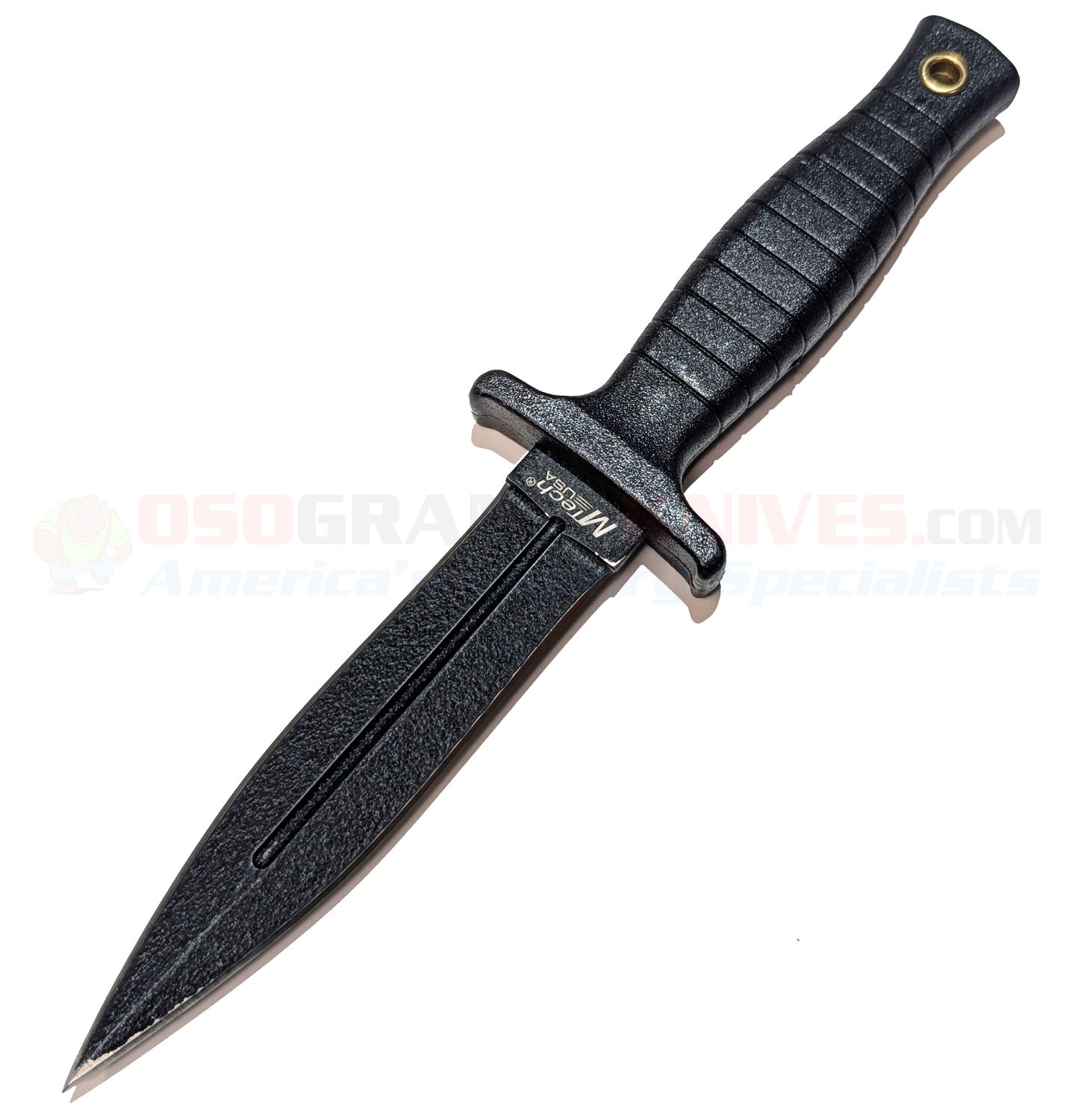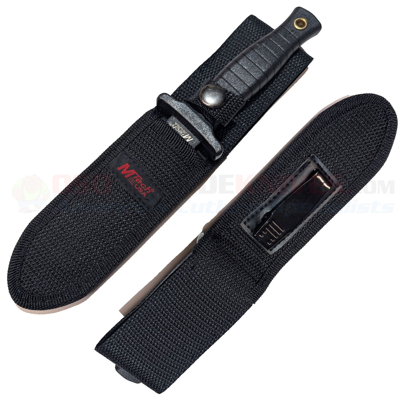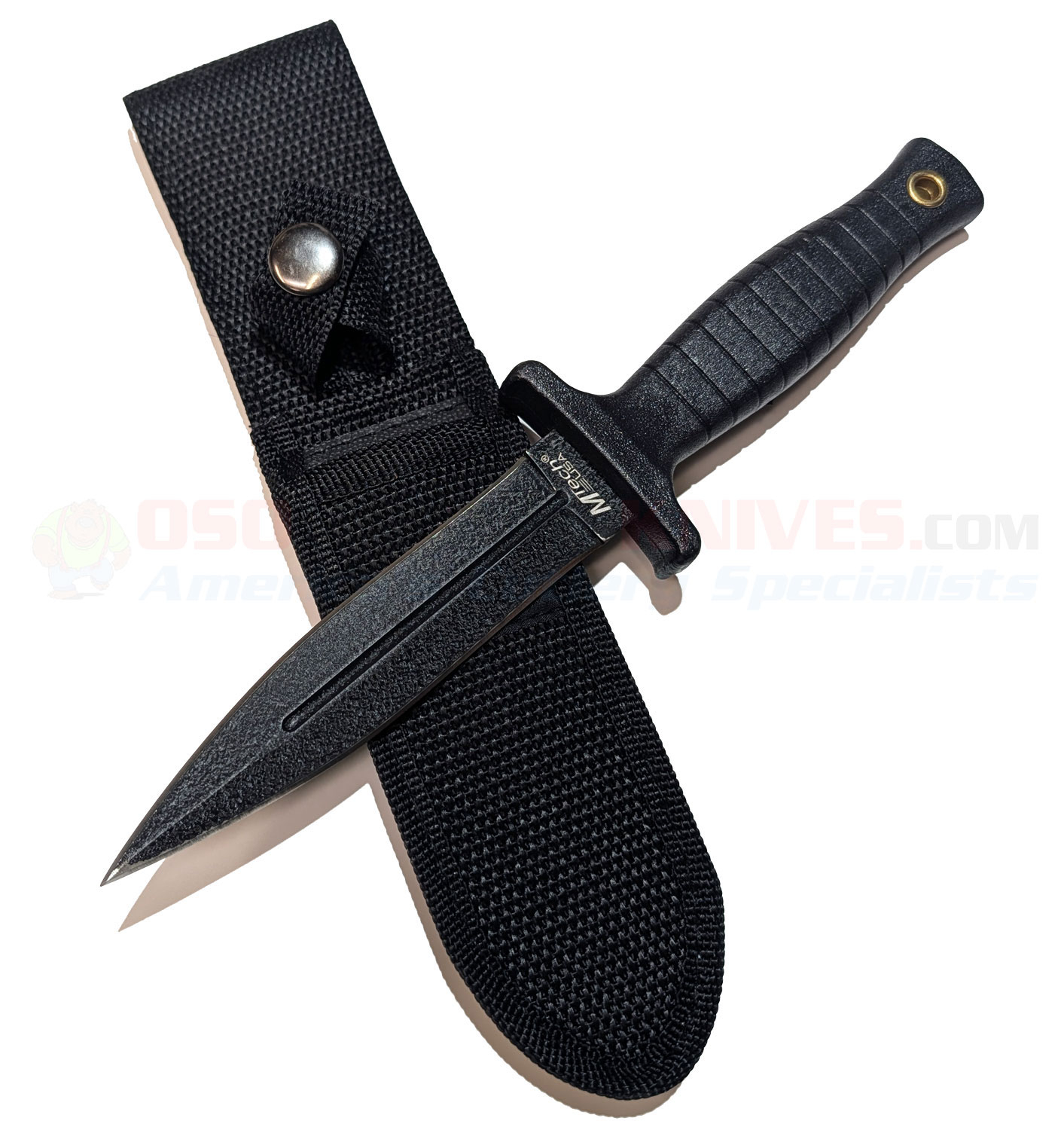 MTech Large Boot Knife Dagger Fixed (4.50 Inch Double-Edge Black Spear Point Blade) Black Grooved Rubber Handle + Nylon Sheath MT097