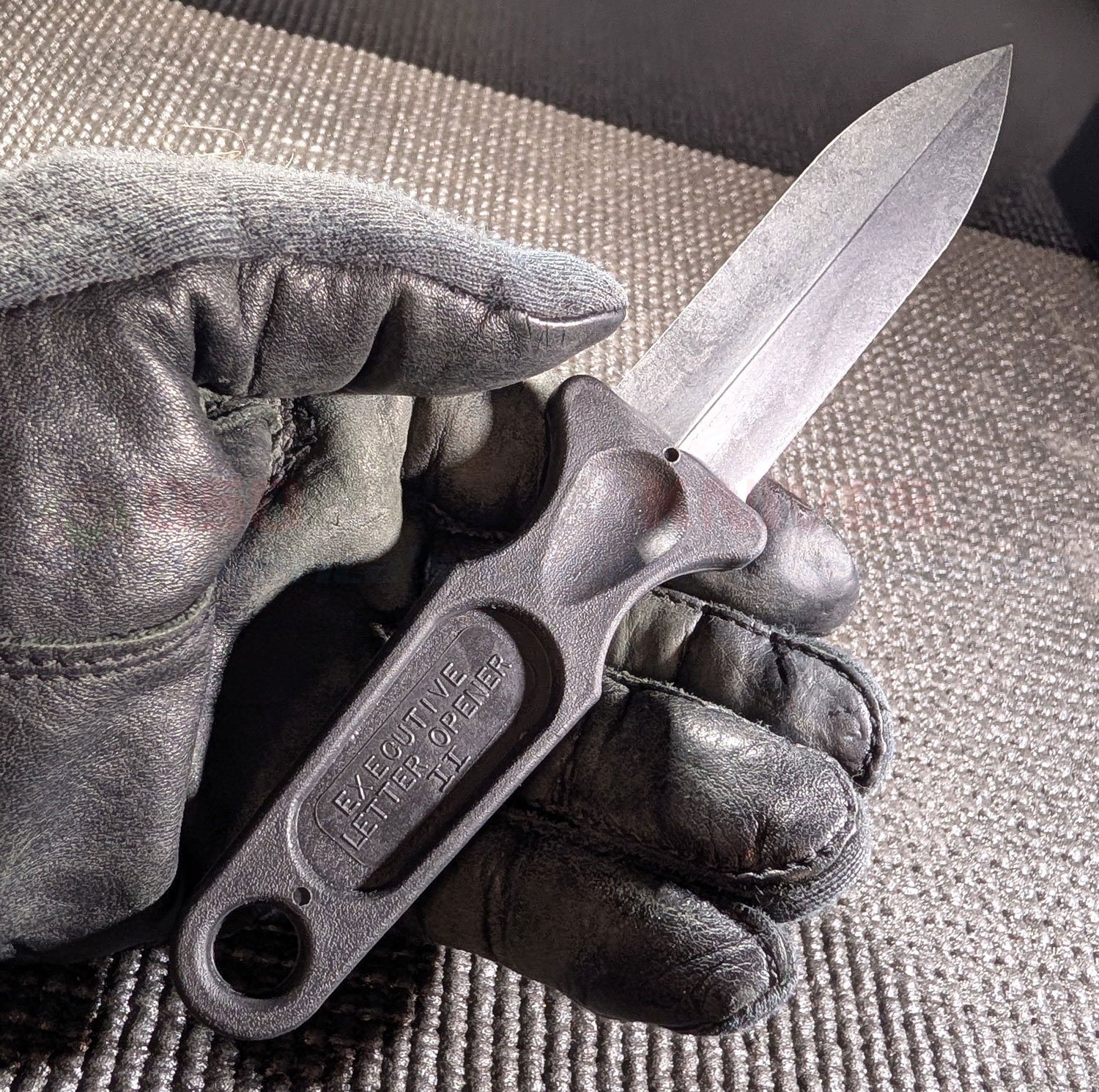 CIA Executive Letter Opener Dagger: In tests the tough 3.75 inch double-edge dagger blade was driven through 1/2 inch thick plywood with minimal damage, needing only to be resharpened. This knife is primarily designed to serve as a self defense tool that can be carried virtually everywhere. May be carried under a watch band, in a sock, shirt or jacket, worn as a neck knife or taped anywhere on the body. Weighs only 2.0 oz.