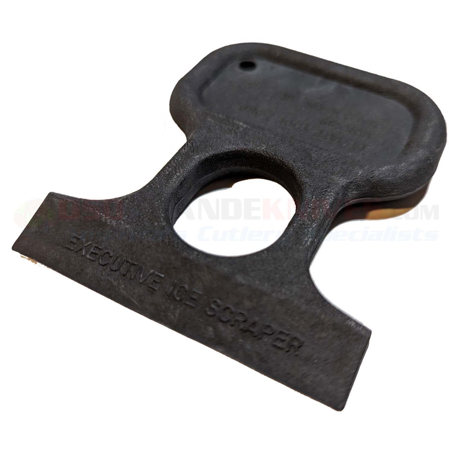 CIA Ice Scraper: This discreet and non-detectable self-defense weapon measures 3 1/2 inch overall with 2 5/8 inch wide ice breaker blade. This one-piece full-tang knife has a double stem skeletonized push T handle for strength, stability and a superb grip even when the hands are wet. Standard push daggers have excellent grips but this bad boy turns it up a notch with it's double stem which enables the user to have a superior grip plus knuckle protection! Simply hold by inserting the middle finger in the hole, with rounded end in palm to make a fist. The ice scraper makes short work of cleaning ice off your windshield and can be used alternately as an emergency self-defense tool. May be used as an ice scraper, key ring and ideal for a self-defense weapon.